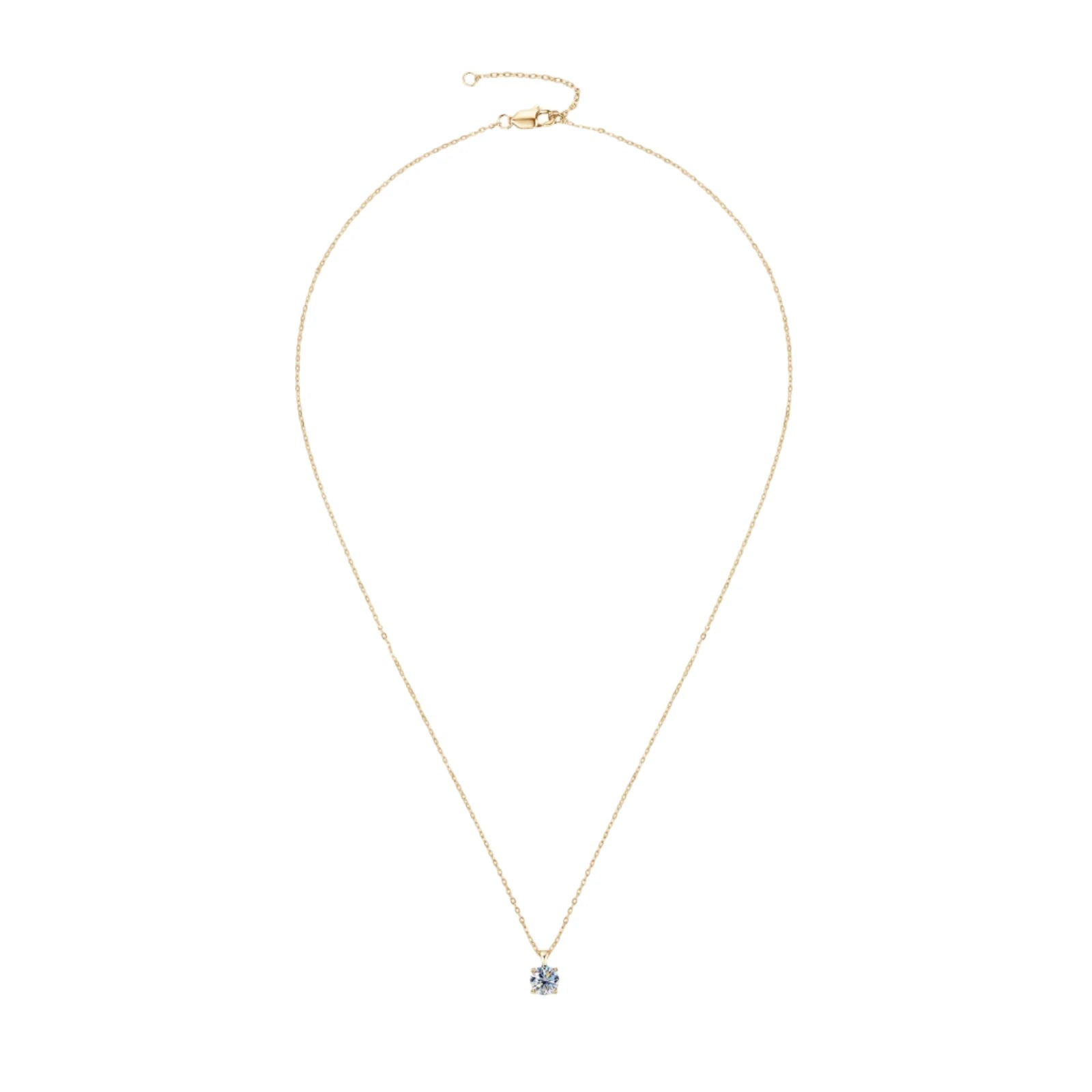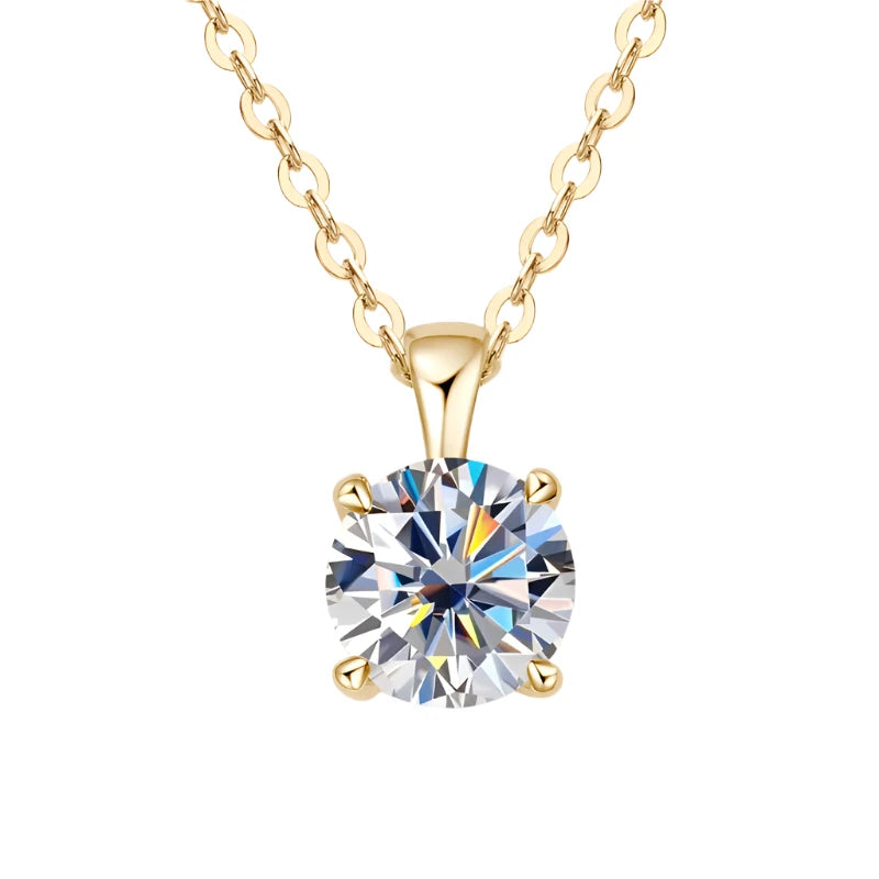 Elevate your elegance with this stunning 1.0 carat Moissanite Astrala necklace, featuring an 18k gold-plated pendant and a real 925 gold plated sterling silver chain. The brilliant round-cut moissanite stone boasts exceptional clarity (VVS1) and color (D-E), offering the look of a flawless diamond. Designed with a prong setting for maximum sparkle, this necklace is both timeless and luxurious. The adjustable chain ensures a perfect fit, making it an ideal piece for any occasion. Each necklace comes with a GRA certificate and a gift box, making it a perfect gift for someone special.