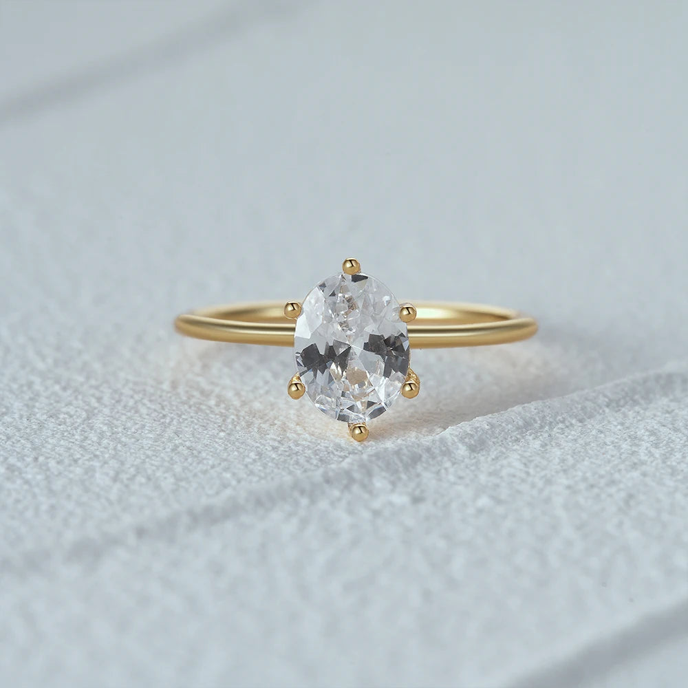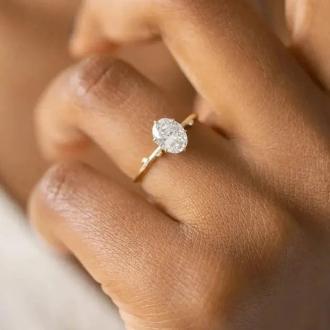 This stunning gold ring, featuring an elegant oval (egg-shaped) zirconia stone, exudes sophistication and style. Made from 925 sterling silver with a gold finish, it is perfect for special occasions like weddings or as a daily statement piece. The stone's subtle sparkle beautifully catches the light, giving the ring a luxurious feel. This stylish design is ideal for women who appreciate a timeless and refined look. A perfect gift or a gorgeous addition to any jewelry collection.